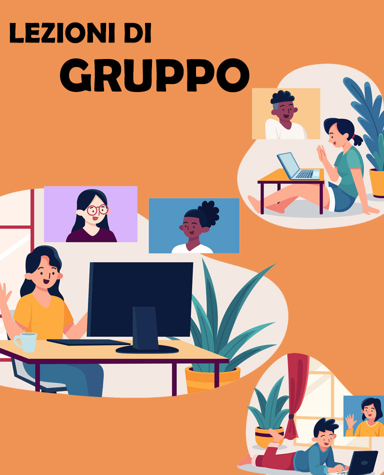 Sono i corsi settimanali divisi per livello e formati da gruppi omogenei con una programmazione adattata al gruppo. Ogni lezione è accompagnata da materiali inviati prima della lezione e feedback finale dopo la lezione.